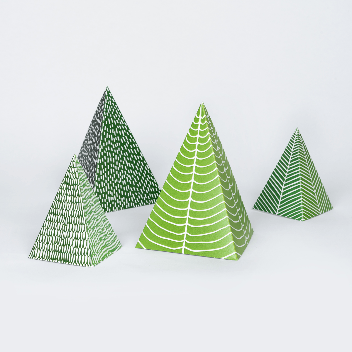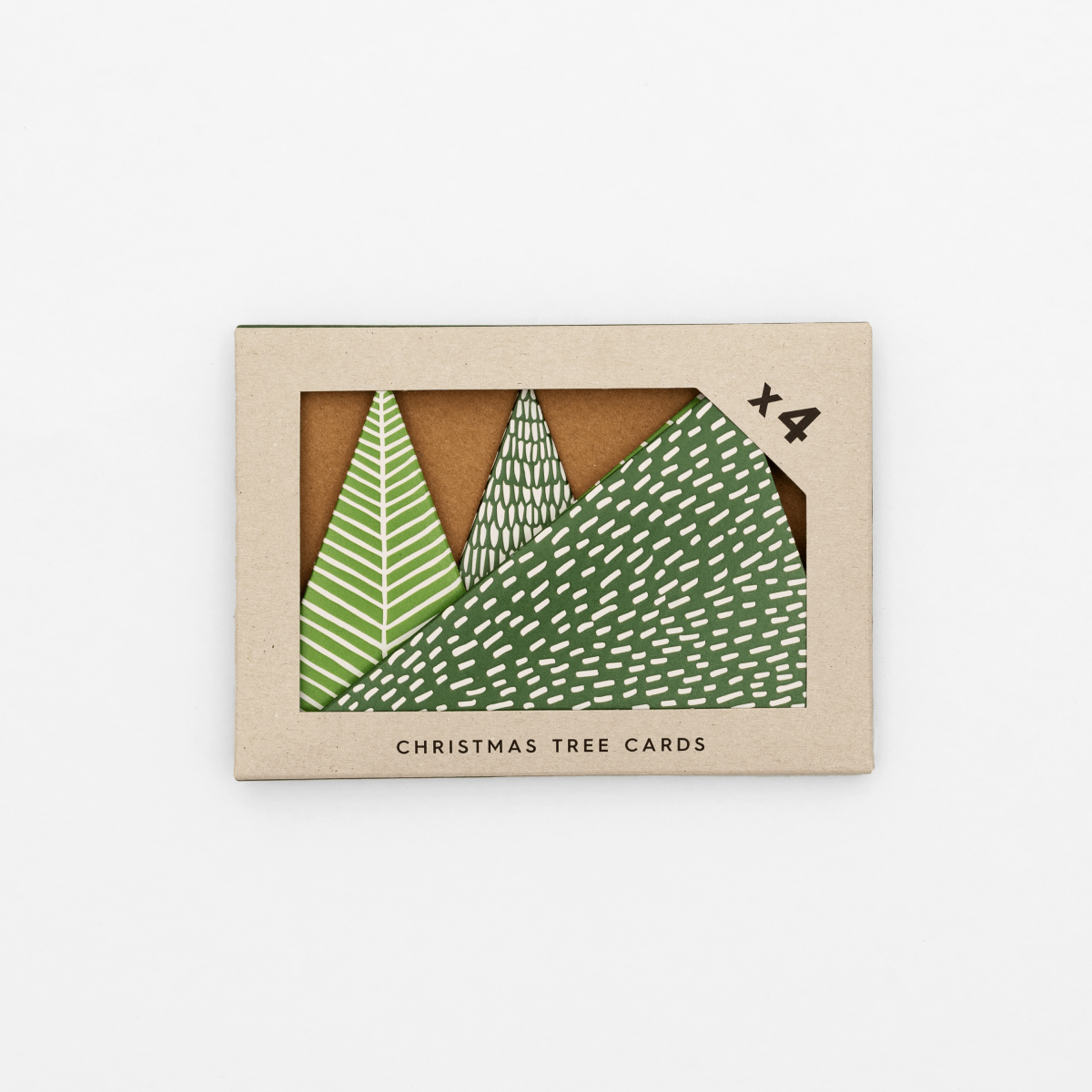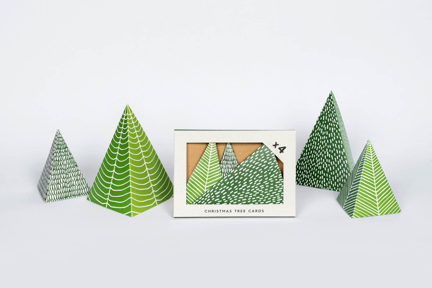 - A pack of 4 Christmas cards which can be folded to create a tree. The set also makes a nice festive display when kept together.