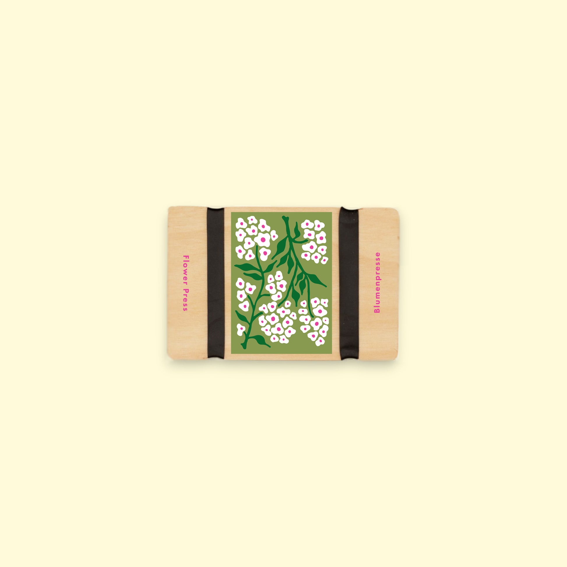 This mini flower press is perfectly pocket-sized, making it easy to take along on your walks and collect flowers as you go. Just place small blooms and leaves between the pages, secure them with the elastic bands, and let them dry.