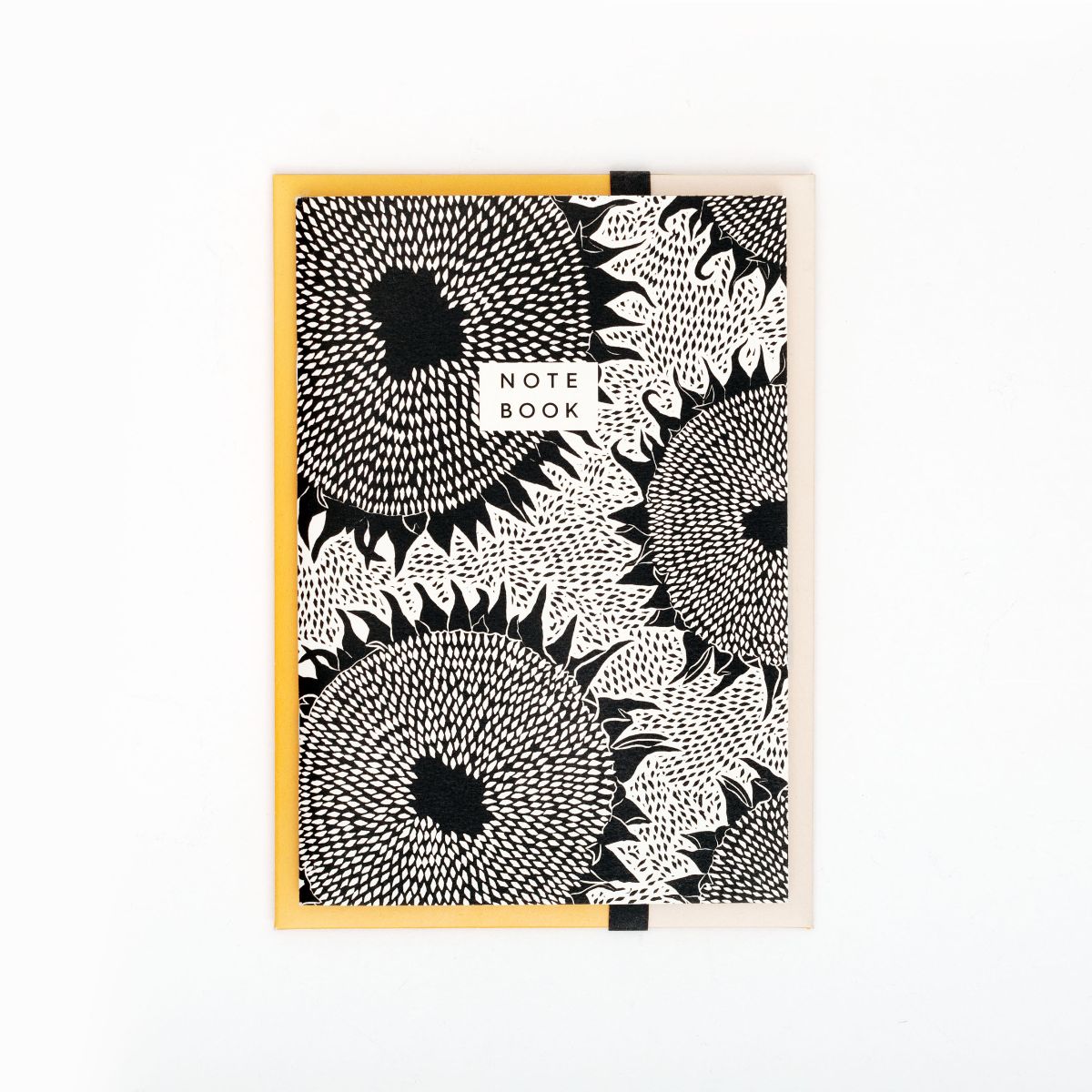 250gsm sustainably sourced cover (containing cotton for a tactile feel) in limestone white 115gsm 100% recycled natural white pages 350gsm folder with thick black rubber band |