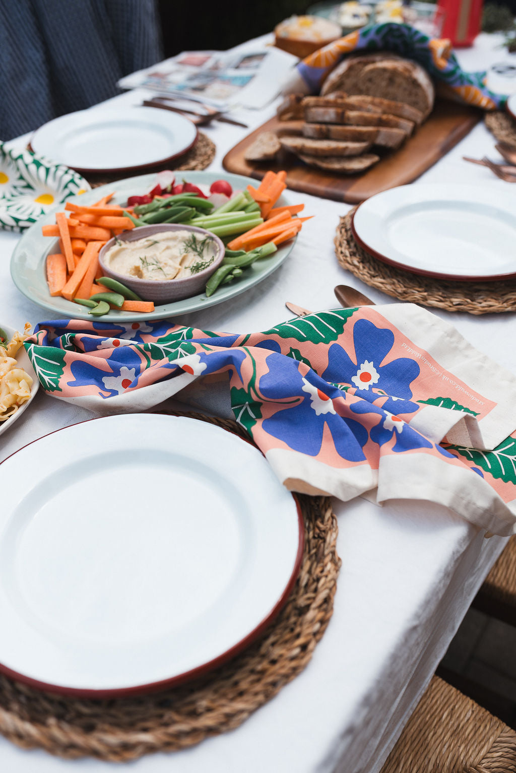 Design developed from our bank of floral illustrations. 3 colour screenprint on unbleached cotton. Screenprinted and stitched in England. Handy hanging loop included. Hemmed on all four sides. Supplied in a cream board header.