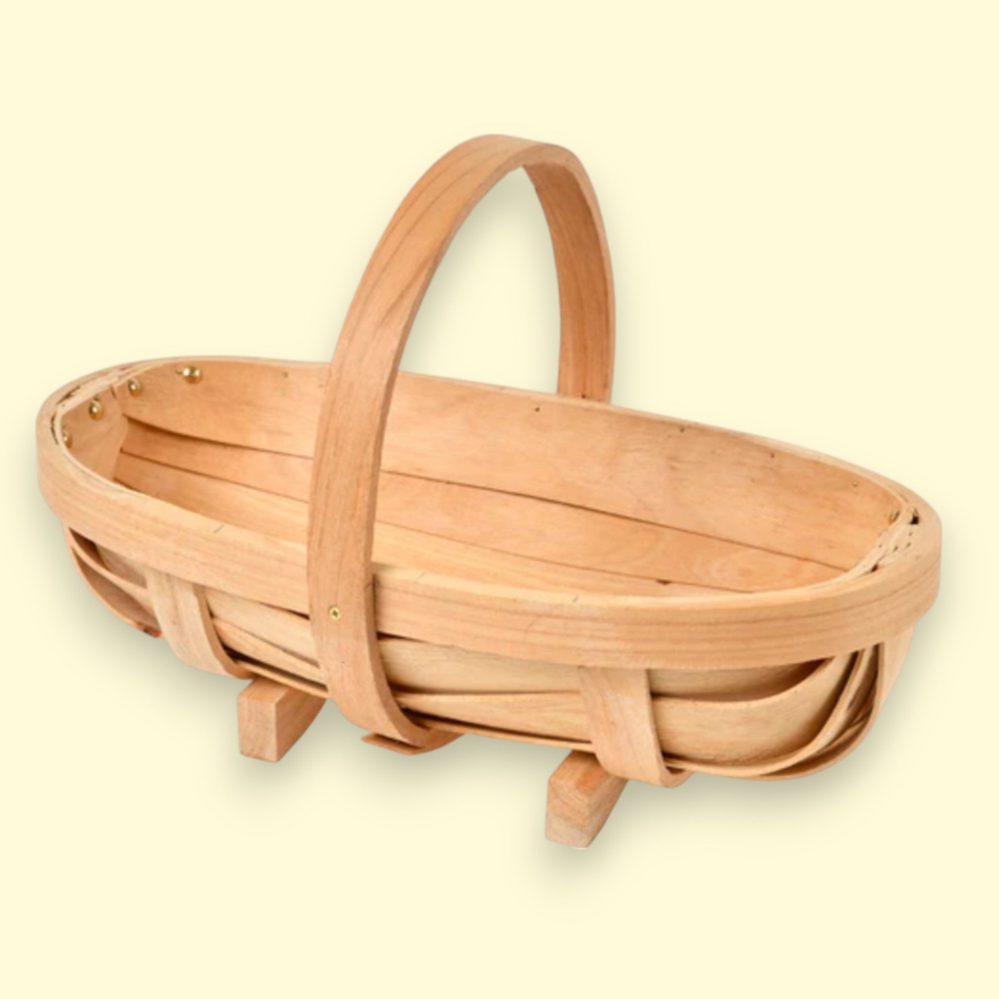 Formed from carefully shaped sustainably scoured populus wood, each strip is held in place with solid brass pins and screws – a lovely detail that adds both durability and timeless style. Lightweight yet sturdy, it's the perfect size for carrying a satisfying haul from garden to kitchen.